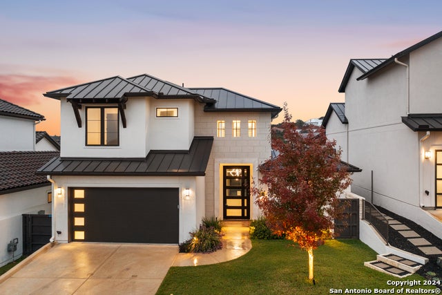Welcome to Dominion Heights. San Antonio's newest luxury, low-maintenance community steps away from the prestigious golfing community, The Dominion. This single-family villa is designed by award-winning home designer, Gustavo Arredondo and expertly built by Dwell Dominion Group. This mostly single-level home with a contemporary design focuses on large, open living spaces and tall ceilings. You are greeted through a 10-foot pivot door and double-height foyer. The great room, dining room, and kitchen are all connected featuring 10-14 foot ceilings and multiple windows for abundant light. Kitchen features an oversized island, gas cooking, double oven, and walk-in pantry-luxurious spa-like master bath with elegant lighting, walk-in shower, free-standing tub, and deep closet. A secondary bedroom downstairs with a full bath could be used as an office space. Upstairs features a loft area, 3rd bedroom with en-suite bathroom. The home wraps around the central courtyard with views from every room. Exterior features lueder limestone, Ipe, and stucco with a metal roof. An oversized two-car garage has additional space for golf cart parking. A social membership initiation fee to Dominion CC is included with the home purchase. The builder is offering a rate buydown for qualified buyers, making this an excellent opportunity to secure a lower interest rate on your new home!