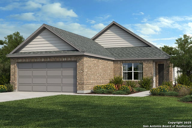 This charming, single-story home showcases an open floor plan with 9-ft. ceilings. The modern kitchen features Woodmont Belmont 42-in. upper cabinets, adding sophistication to your culinary space. The primary bath boasts upgraded cabinets, a raised vanity, 42-in. garden tub and separate shower with Daltile Choice tile surround. Finishing touches include dimensional roof shingles, Generation Lighting fixtures, Monte Carlo ceiling fans, a Continental 3-lite entry door, garage door opener, soft water loop, wireless security system and automatic sprinkler system. The back patio provides the ideal setting for outdoor recreation and leisure.