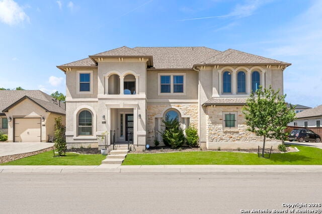 Elevated elegance meets everyday comfort in this 5-bedroom, 4-bathroom home located in a prestigious gated community. Designed to impress, the curb appeal draws you in with meticulous landscaping and a three-car garage. Step inside to find a bright, spacious interior with soaring high ceilings and luxurious modern finishes throughout. The heart of the home is a chef's kitchen, complete with white cabinetry, stainless steel appliances, and a grand island with bar seating, perfect for gathering and entertaining. A sliding door off the living room creates seamless indoor-outdoor living, opening to a backyard oasis featuring a built-in outdoor kitchen and fireplace-ideal for relaxing under the stars or hosting unforgettable evenings. Upstairs, a spacious loft area offers the flexibility of a second living room, media space, or playroom. The primary suite provides a tranquil retreat with a spa-like en suite bathroom, while generously sized secondary bedrooms offer comfort and space for family or guests. With a grand backyard ready for your vision, this home offers the ideal setting for personalized outdoor living. Combining location, design, and lifestyle, this home captures the essence of Hill Country luxury with city convenience. Schedule your private tour and experience it for yourself.