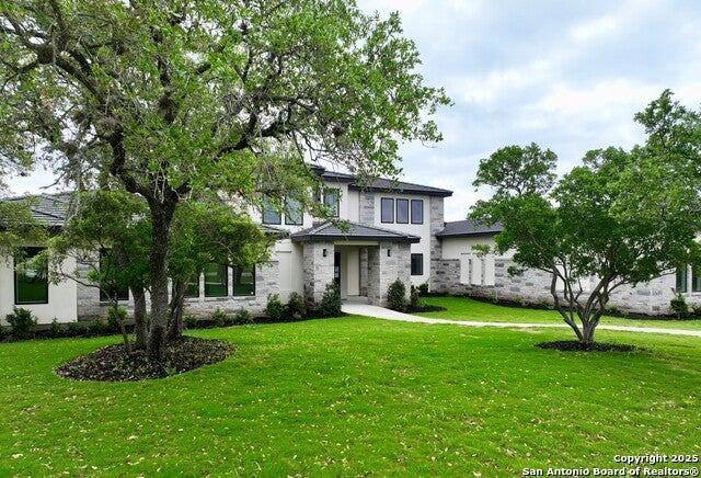 This stunning new home is in The Trails of Briggs Ranch, perched just above the seventh fairway of Briggs Ranch Golf Club. Three bedrooms and 3.5 bathrooms on the first floor and an elevator along with custom built staircase to take you to the upstairs loft and the two additional bedrooms. It offers stunning sunrise views in the rear yard. This is a secure community in west Bexar County conveniently located just 25 minutes from downtown San Antonio, the SA International Airport and 8 minutes from the beautiful Alsatian town of Castroville and all of its restaurants, shopping and small-town charm. The topography offers a gentle slope down to the course with a beautiful view of the rising sun over the golf course.