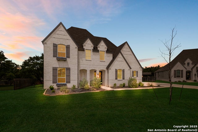 Nestled on an expansive lot in the sought-after Timberwood Park community, this exquisite 4-bedroom, 4.5-bath home seamlessly blends luxury, comfort, and craftsmanship. With stunning curb appeal, timeless brick exterior, and refined architectural lines, this home welcomes you with warmth and sophistication. Step into the grand foyer and be captivated by soaring ceilings, rich wood-look tile flooring, and a graceful staircase with iron spindles. A dedicated home office with custom built-ins and dramatic accent wall offers the perfect work-from-home sanctuary. The formal dining room is bathed in natural light and flows beautifully into the heart of the home. The chef's kitchen is a showstopper-featuring a massive quartz island, high-end stainless appliances, custom cabinetry, and a stylish subway tile backsplash. Entertain effortlessly in the open-concept living room, where floor-to-ceiling windows overlook the backyard oasis and a charming corner fireplace anchors the space. The spacious primary suite is a true retreat with vaulted ceilings, large windows, and a spa-like en-suite bath featuring a soaking tub, walk-in shower with bold navy tile, and double vanities. Upstairs, generously sized secondary bedrooms and a large game/media room offer ample space for relaxation and play. Outside, enjoy serene Texas evenings on the covered back patio or entertain guests on the custom deck surrounded by mature oaks. The oversized backyard offers room to roam, play, or even add a pool. Additional features include a 3-car garage, dedicated laundry room, abundant storage, and access to award-winning schools and community amenities like parks, trails, and a private neighborhood lake. Don't miss the opportunity to own this thoughtfully designed, magazine-worthy residence in one of North San Antonio's premier neighborhoods.