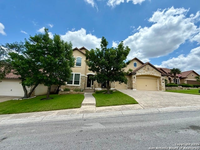 FORMER MONTICELLO MODEL Elegant 4-Bedroom Home with Gourmet Kitchen & Game Room in Sought-After Community This beautifully designed home showcases a classic tile roof, stone and stucco exterior, and a spacious 3-car garage. The 4-bedroom, 3-bath layout offers generous living space, high ceilings with custom treatments, and refined crown molding throughout. The luxurious primary suite features a spa-inspired bathroom complete with a jetted soaking tub, walk-in shower, and dual vanities. The gourmet island kitchen, a chef's dream, is equipped with granite countertops, stainless steel appliances, and a cozy breakfast area. Perfect for entertaining or relaxing with family, the large upstairs game room offers endless possibilities. Located in a vibrant neighborhood with a top-tier recreation center featuring a sparkling pool and tennis courts, this home has it all!