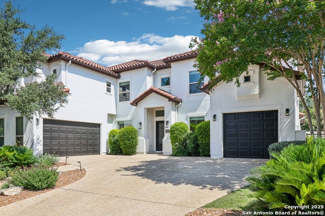 This impressive two-story home is located in the gated community of Andalucia, known for its wide streets, strong sense of security, and convenient access to shopping, dining, and major roadways. Thoughtfully designed for both everyday living and entertaining, this home offers a spacious layout filled with natural light and elegant touches throughout. The open floorplan features soaring ceilings and an abundance of windows, creating a bright and welcoming atmosphere. A formal dining room with a recessed ceiling, chandelier, and custom wine closet sets the stage for memorable gatherings. At the center of the home, the great room showcases a tall stone fireplace and flows effortlessly into the kitchen and breakfast area with direct patio access. The island kitchen is both functional and stylish, equipped with stainless steel appliances, gas cooking, extensive cabinetry and counter space, a breakfast bar, and modern pendant lighting. A dedicated home office provides a quiet space for work or study. The first-floor primary suite offers a private retreat with outside access, a large en suite bathroom featuring a soaking tub, walk-in shower, and generous closet space. Four secondary bedrooms include walk-in closets and en suite baths, providing comfort and privacy for family and guests. Upstairs, the game room includes a built-in kitchenette, bar, half bath, and access to a media room and balcony-perfect for entertaining or relaxing. Additional built-in desk space and cabinetry on the second floor add to the home's functionality. The backyard is a private sanctuary with 15-foot-tall red tip shrubs creating a natural privacy wall. Enjoy both covered and open patio areas, an extended pergola, and lush landscaping-ideal for quiet evenings or weekend get-togethers. Recent upgrades include new water heaters and a water softener system. This well-maintained home offers space, comfort, and convenience in a sought-after community. Schedule your personal tour today and see all it has to offer!