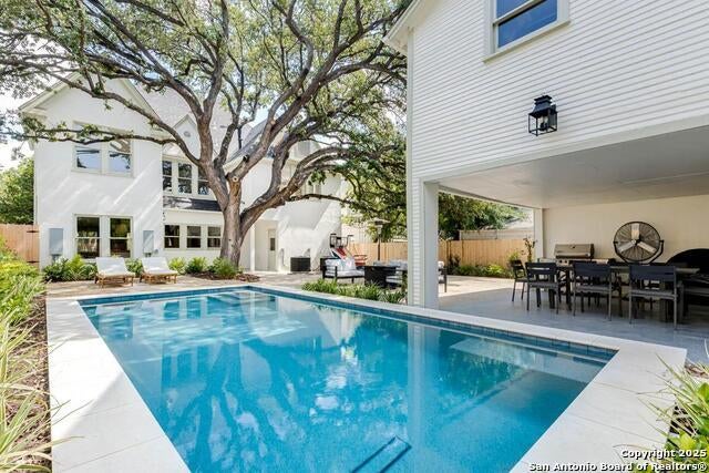 Welcome to 264 E Lullwood Ave, a beautifully restored 5-bed, 4.5-bath residence with a guest house nestled in the heart of Monte Vista, one of San Antonio's most coveted historic neighborhoods. This home masterfully blends early 20th century architectural charm with modern luxury. As you arrive, the inviting exterior hints at the character within. The living area greets you with abundant natural light, rich hardwood floors, and a warm, welcoming ambiance. Flow into the spacious primary suite, a true sanctuary with a private living room, cozy fireplace, soaking tub, double shower heads, and a walk-in closet, perfect for unwinding. At the heart of the home lies the entertainment-focused kitchen, meticulously designed for gatherings. Custom cabinetry, sleek quartz countertops, and modern stainless steel appliances create a space that's both functional and stylish. The seamless connection to the dining area and living room makes hosting friends and family a pleasure. Step outside to your private oasis, an expansive backyard highlighted by a shimmering pool and a majestic, mature tree offering shade on sunny Texas days. The backyard provides the perfect spot for outdoor lounging and dining, while the nearby grilling area encourages alfresco entertaining. Adjacent to the pool, discover the versatile pool house a separate 453 sq.ft. 1-bedroom, 1-bathroom suite situated above the detached garage. Featuring a full bathroom and a full kitchen, this space offers endless possibilities as a guest suite or rental unit. This property also presents the opportunity to easily convert into a spacious 7-bedroom residence, maximizing income potential. The extensive remodel includes updated electrical, plumbing, roof, HVAC, and 2 sets of WD. Experience the best of both worlds at 264 E Lullwood Ave historic Monte Vista charm meets modern luxury. Schedule your private tour today and make every day feel like a retreat.