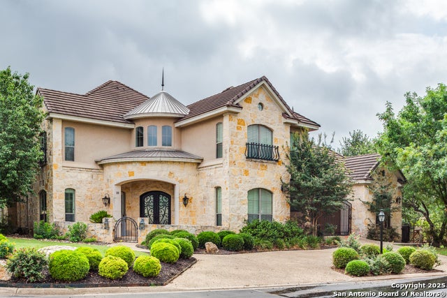 Now available! Gorgeous 5-Bedroom Home located in the highly sought-after Renaissance at The Dominion! Experience the timeless elegance and exceptional quality of this stunning residence crafted by Character House, a prestigious Parade of Homes builder. This exquisite home combines luxury, comfort, and modern efficiency. Upon entry, a grand double staircase welcomes you into a spacious and light-filled foyer. The main level features a luxurious master suite with a private exercise room. Both a beautifully appointed spa-like bathroom and guest suite are also conveniently located downstairs. Located on the second floor you'll find three bedrooms, a dedicated home office, and an impressive top-of-the-line stadium seating media room perfect for family movie nights and entertaining guests. Designed for both convenience and sustainability, this home features a broad range of upgrades and recent updates including: Three brand-new AC units, Solar panels with two high-capacity battery storage units, two laundry rooms, new media room equipment and furniture, and so much more! (See updates in additional documents section). Enjoy year-round outdoor living with a low-maintenance yard, a spacious covered patio with new ceiling fan, and a newly re-plastered pool and spa with heating option. The property offers ample parking with a three-car garage and a private gated carport that can hold an additional 3 cars. With too many updates to list, experiencing this home in person is essential to truly grasp it's superior craftsmanship and thoughtful design. Schedule your private showing today!