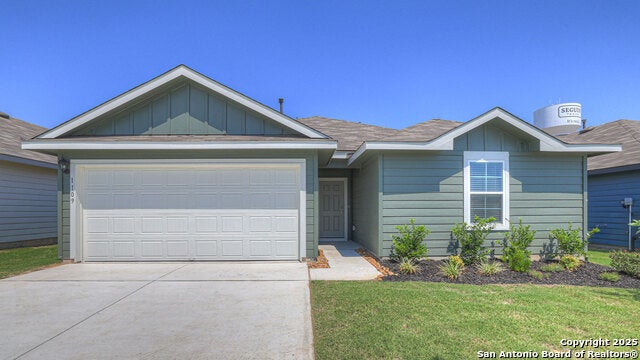 MOVE IN READY! LOCATED IN NAVARRO ISD. NO BACKYARD NEIGHBORS! The Bellvue is a single story home that offers 3 bedrooms, 2 bathrooms and 1,407 sq. ft. of living space. As you enter the long foyer, you'll pass both extra bedrooms, bedroom 2 and bedroom 3, as well as the extra bathroom, bathroom 2. The secondary bedrooms both feature large walk in closets. Next you'll enter the open concept kitchen which features stainless steel appliances, granite countertops and