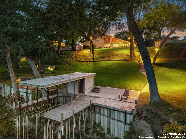 Meadow Lake's making a comeback-and this waterfront gem is already ahead of the curve. Tucked in one of the lake's most sought-after pockets, this nearly 1-acre property delivers 107 feet of improved shoreline, a private dock with boat lift, boardwalk, and dual ramps for your jet skis. With dam construction slated to begin for Fall 2025, the Guadalupe River still flows strong-perfect for paddling, floating, and soaking in the peace. The yard? Next-level. Mature trees, lush landscaping, and special lighting for evening hangs. Two slab patios offer room to grill, chill, and gather. Inside, the vaulted living area brings on the charm with a stone fireplace, wall-to-wall windows, and laminate flooring throughout-no carpet, no stress. Storage? Everywhere. Think five walk-in closets, built-ins, and a flex space with wet bar and wine storage for entertaining or winding down. Two spacious suites-one in its own wing-mean you can host with ease or spread out in style. Add in a kitchen with custom cabinets, a walk-in pantry, and full appliance package, and you're fully set up. This isn't just a lake house-it's a front-row seat to the lifestyle you've been waiting for.