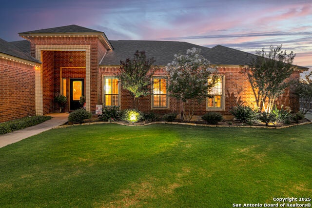 Welcome to this inviting 3 bedroom, 2 1/2 bathroom home nestled on a spacious 1/2 acre lot at the end of a peaceful cul-de-sac. Located just outside the city limits in a quaint and quiet neighborhood, this home offers the perfect blend of country serenity and modern convenience. As you enter, you're welcomed by a beautiful foyer that opens into a spacious living room, elegantly framed by a graceful archway. The kitchen has just been thoughtfully renovated with brand-new stainless steel appliances, gleaming quartz countertops, and custom cabinetry that combines function and style. Whether you're preparing meals or entertaining guests, this space is sure to impress. In 2024 a brand new HVAC, garage door, and an Andersen window in the dining room were put in. The roof was also replaced in 2022. This home also has a sprinkler system and has permanent LED exterior lighting (TrimLights Brand) for year round programmable lighting options. The expansive primary suite is a true retreat, boasting two walk-in closets and a unique en-suite layout with separate his and hers toilet areas for added privacy and comfort. A private door from the primary bedroom opens to a covered patio-perfect for morning coffee or watching the sunsets in the evenings. Outside the primary suite is a study that is perfect for working from home or a quiet reading space. The additional bedrooms are thoughtfully situated on the other side of the home, offering privacy and separation from the primary suite. Designed for convenience, the guest bath offers a dual-vanity layout-an area with a double vanity and wall-to-wall storage along with another single vanity inside the private toilet/shower area. Enjoy sitting on your back porch overlooking serene countryside views all while being just a short drive to town. This home truly has it all. Don't miss your chance to own this one-of-a-kind property-schedule your showing today!