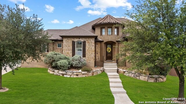 Welcome to this stunning custom Imagine-built home in the highly sought-after Indian Springs neighborhood! This energy-efficient gem features foam insulation in all exterior walls and the attic, keeping your energy bills low and your comfort high year-round. Step inside to rich hardwood floors, plush carpeted bedrooms, and eye-catching details like the exposed limestone brick wall in the dining room-perfect for elevating your dinner parties. The kitchen is a chef's dream with custom cabinetry, granite countertops, a spacious butler's pantry, and a full wine bar complete with a dual-temperature fridge. Soaring vaulted ceilings and exposed beams add dramatic flair to the living room, centered around a gorgeous limestone brick fireplace. Upstairs, enjoy a massive media room with its own fridge and private bathroom-ideal for movie nights or hosting guests. Relax in your spacious primary suite featuring dual vanities, a full-size garden tub, and plenty of natural light. Step outside to a newly added covered deck and outdoor kitchen, where you can soak in breathtaking Texas Hill Country sunsets from your over half-acre lot. Neighborhood amenities include a community pool, playground, and scenic trails-everything you need to enjoy Hill Country living at its finest.