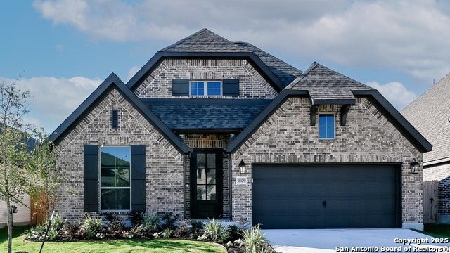Extended entry with 13-foot ceiling leads to open kitchen, dining area and family room. Kitchen offers generous counter space, corner walk-in pantry, 5-burner gas cooktop and inviting island with built-in seating space. Dining area flows into family room with wall of windows. Game room with French doors just across from kitchen. Primary suite includes double-door entry to primary bath with dual vanities, garden tub, separate glass-enclosed shower and two large walk-in closets. Secondary bedrooms feature walk-in closets. Extended covered backyard patio. Mud room off two-car garage.