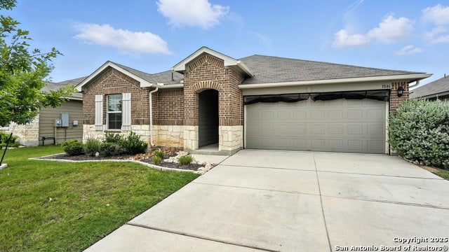 Welcome to 1046 Amble Oak, located in the desirable Navarro Oaks subdivision! This well-maintained 3-bedroom, 2-bath home is just 4 years old and offers a spacious open floor plan perfect for comfortable living and entertaining. The island kitchen features granite countertops, a breakfast bar, and a gas stove-ideal for any home chef. The primary suite offers a walk-in closet with built-in shelving, a double vanity, and a walk-in shower. Secondary bedrooms are spacious, and the second bathroom includes a convenient shower/tub combo. Enjoy your mornings or evenings on the covered patio overlooking the fully fenced backyard, which backs up to an open field with no current neighbors behind-providing added peace and privacy. The home also features an assumable loan, offering potential savings for qualified buyers.Located less than 5 minutes from I-10, with quick access to New Braunfels, San Marcos, and San Antonio-this gem in Navarro ISD checks all the boxes!