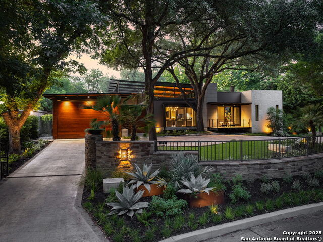 There's simply nothing like this transcendent warm modern home rooted in the Texas landscape, with a commitment to clean lines, natural materials, and seamless indoor-outdoor transitions. Its use of glass as both wall and threshold, and integration of heavy, elemental materials like stone, concrete, and wood set this apart from the usual modern design in San Antonio. The extended ceiling planes, steel framing, and sculptural use of light reflect the same refined restraint. The pivot between privacy and openness, and the way light is curated, feels particularly aligned. The backyard brings fun and privacy, oriented around a massive, heritage oak with curated landscaping and lush, green spaces, and a natural lagoon pool that curves through stone and dense greenery, is simply a work of art on its own. If you need more than a 2-car garage, the high ceilings offer the chance to add lifts for a total of 4, plus there is a huge circle drive. Olmos Park is a crown jewel of sophisticated in town San Antonio living. It's the first choice of many high end buyers in the Alamo City.