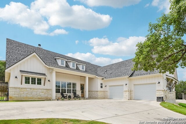 Welcome to this stunning Modern Farmhouse, built in 2020 and loaded with thoughtful upgrades designed for comfort, convenience, and style. Tucked into a private, tree-lined setting, this 3-bedroom, 3.5-bath home with a dedicated office and upstairs game room blends rustic charm with modern functionality. Step inside to an open-concept floor plan flooded with natural light, sleek wood flooring, and a cozy wood-burning fireplace with a gas starter-perfect for Texas winters. The chef's kitchen is equipped with gas appliances, granite counters, and a large island that opens to the living and dining areas, making it ideal for entertaining. Upstairs, the spacious game room features reinforced flooring, split AC unit, and its own full bathroom-great for movie nights, guest stays, or a teenage retreat. This home is not just beautiful-it's smart and energy-efficient too. Foam insulation throughout, a tankless gas water heater, water softener, NEST cameras and thermostat, and a brand new 2025 roof with upgraded shingles (potentially insurance-discount eligible) make this home a wise long-term investment. Enjoy outdoor living year-round on the covered back patio, featuring built-in speakers and a built-in gas grill-ready for your next BBQ. And with a 220V outlet in the garage, you're future-ready for an EV or heavy-duty tools. Additional highlights include a TV antenna for local streaming, a two-car garage, and a peaceful backyard perfect for relaxing evenings. This home has all the charm of a farmhouse-without the farm chores. Why Timberwood Park? This community is known for large, private lots, mature trees, and resort-style amenities-including a 30-acre private park with a lake, Olympic-sized pool, clubhouse, playgrounds, walking trails, and year-round events like concerts in the park. Plus, you're in the acclaimed Comal ISD with easy access to Highway 281 and Loop 1604. Whether you're looking to escape the city hustle or just want room to breathe, this home delivers peace, privacy, and practicality-all in one perfect package. Schedule your showing today and come experience the perfect mix of luxury, efficiency, and timeless style.