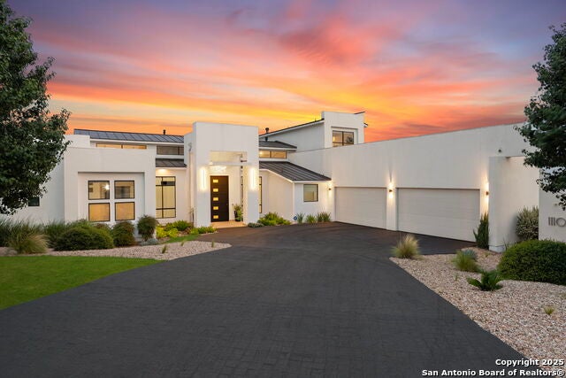 Modern Luxury in The Pinnacle One of the finest custom-designed estate by Oscar Flores in the exclusive guarded community of The Pinnacle. This 5,592 sq ft home sits on a generous 0.50 -acre lot and features an open floor plan with 5 en-suite bedrooms, 2 half baths, and luxury finishes throughout. Interior highlights include 24x48 Italian-style marble-look porcelain tiles, custom Italian cabinets, floating vanities, marble-look slabs, high-end appliances, modern ceiling design with cove lighting, floating stairs, and custom interior doors. Floor-to-ceiling windows and a corner sliding door create seamless indoor-outdoor flow. The primary suite offers a sitting area, large windows overlooking the pool, and a spa-like bath with freestanding tub, oversized shower, double vanities, and spacious walk-in closet. Outdoor living includes a large, covered patio with Cantera flooring, full outdoor kitchen, fireplace, and a zero-edge pool. A glass-enclosed wine cellar completes this timeless, modern residence. Located in one of San Antonio's most sought-after luxury communities, a rare opportunity to own a beautifully designed, high-end home that blends contemporary sophistication with timeless quality.
