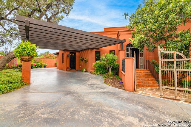 A Spanish-Inspired Luxury Villa in the Heart of Seguin Step into timeless elegance in this one-of-a-kind Spanish-style villa. Nestled in a private, walled estate just minutes from I-10 and SH130, this breathtaking custom villa is a true hidden gem-offering artisan luxury and timeless design in a peaceful garden setting. Built by The Koehler Company and meticulously crafted by Jeff Koehler and Nancy Stevens of Design Associates in collaboration with Thorn & Graves Architectural Firm, every inch of this home reflects unmatched attention to detail. From the moment you step inside, you're greeted by vibrant tile work, soaring wood-beamed ceilings, and wrought iron accents that echo the soul of traditional Spanish design. The living room is an inviting centerpiece-anchored by a grand Cantera stone fireplace and framed by custom art niches, iron chandeliers from Nuevo Laredo, and rich wood beams. French doors and Pella windows frame peaceful garden views throughout. The elevated dining room and multiple sitting areas are framed by ornate railings and tile-trimmed archways, perfect for both intimate evenings and festive gatherings. The kitchen is a culinary dream with custom Koehler Company cabinetry, a generously-sized tiled island, and imported Santa Rosa terra cotta tiles that create a warm, functional heart to the home. Each handcrafted element feels intentionally placed, contributing to a story that unfolds with every corner. Retreat to the primary suite, where color and texture blend beautifully. It offers refined comfort and a serene ambiance with rich salmon-hued walls, antique gilded mirrors, and custom tile accents that add personality and charm . Throughout the home, you'll find unique finishes like tile baseboards, arched doorways, and hand-forged ironwork-every detail curated with purpose. Tucked behind antique gates and surrounded by ivy-covered walls, lush gardens, and vibrant tile work, this hidden gem blends Old-World charm with modern comfort. Outside, mature oak trees stretch across the property, shading the circle drive and welcoming guests with grandeur. A rear-entry garage and oversized carport provide ample space for parking and functionality, while the courtyard and BBQ area offer peaceful spots for outdoor living under the Texas sky. The garage can be converted to a third bedroom. Featured twice in SA At Home Magazine, this residence is more than a home-it's a handcrafted sanctuary that offers seclusion, craftsmanship, and easy access to I-10, SH130, New Braunfels, San Marcos, San Antonio and Austin. This home is stunning and is an absolute MUST SEE so schedule your showing now!