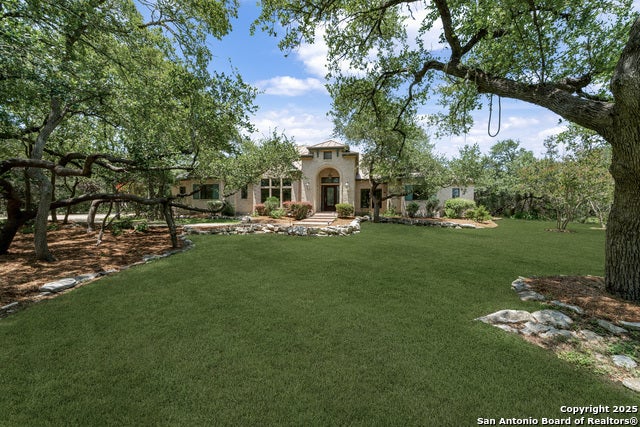 Welcome to your dream home in the heart of highly sought-after Fossil Ridge! Nestled on a picturesque 1.24-acre lot shaded by majestic oak trees, this meticulously maintained one-story custom residence blends timeless elegance with modern comforts. Step inside to find stunning wood floors, rich architectural details, and custom built-ins throughout. This thoughtfully designed home offers two spacious living areas and two dining spaces, ideal for both everyday living and grand entertaining. The gourmet island kitchen is a chef's dream-complete with gas cooking, stainless steel appliances, double ovens, custom cabinetry, and a butler's pantry-seamlessly flowing into the family room and kitchen dining area, both anchored by cozy fireplaces. The private primary suite is a true retreat, featuring its own fireplace, a sitting area, an expansive walk-in closet, and a luxurious spa-like bath with dual vanities, a jetted tub, and a walk-in shower. A versatile bonus room offers flexibility as a game room, home gym, or guest suite. Three generously sized secondary bedrooms include a Jack-and-Jill bath and an additional full bath for convenience. Enjoy peaceful Texas evenings or lively gatherings on the large covered back patio, overlooking a lush backyard with ample space for play, relaxation, or even a future pool. Located in the acclaimed NEISD school district with easy access to HWY 281, the JW Marriott, shopping, dining, and medical facilities-this home truly offers it all.