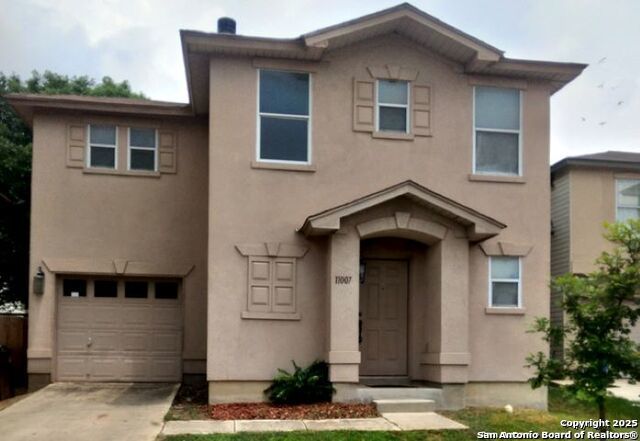 $1,545/month for a lease term of 18 months. $1,595/month for a 12-month lease. Step into this beautifully designed home and be welcomed by a spacious living area, ideal for entertaining or unwinding by the cozy fireplace. The open-concept layout seamlessly connects the living space to a stunning island kitchen, featuring generous counter space, abundant cabinetry, and all kitchen appliances for added convenience. Upstairs, the expansive owner's retreat offers a serene escape, bathed in natural light and complemented by a private en-suite bath. Two generously sized bedrooms offer versatile space for family, guests, or a home office. Step outside to a covered patio overlooking a fenced backyard shaded by mature trees, perfect for relaxing outdoors. Enjoy community perks including a sparkling pool, clubhouse, sports court, jogging trail and playground. Ideally located near shopping, dining, and easy access to Loop 1604.