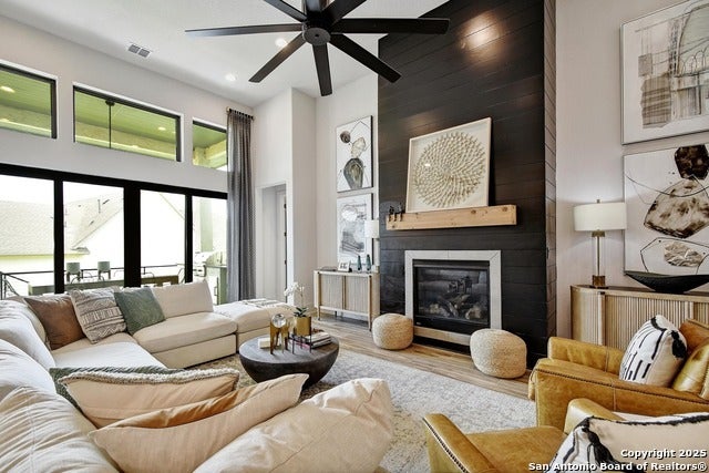 Luxury Meets Lifestyle, an exquisite home by Sitterle, nestled in the prestigious gated Enclave of Campanas at Cibolo Canyons- A premier luxury community. This exceptional one-story residence, previusly a model home, features over $200,000 in designer upgrades and offers 3 spacious bedrooms, 2.5 bathrooms, plus a detached private CASITA complete with its own full bath-ideal for guests or multi-generational living. Elegant design elements include a generously sized primary suite with a spa-inspired bathroom, custom walk-in closet with built-in shelving, and a stunning floor-to-ceiling tiled shower. Premium Moen fixtures and hardware add a sophisticated touch throughout. Entertain effortlessly with extended covered patios in both the front and back, complemented by a fully equipped outdoor kitchen and outdoor fireplace. The front entry is enclosed with a gated iron fence. The expansive living room is anchored by a striking oversized fireplace, while the custom wet bar elevates your hosting game. The chef's kitchen boasts high-end appliances, a gas range, and ample space for culinary creations-all framed by Benedettini Fine Custom Cabinetry, luxury quartz countertops, soaring ceilings ideal for displaying fine art, built-in china cabinet, and customized lighting. Added favorites include a walk-in laundry/mud room with sink & cabinetry, bold accent walls and ceilings, custom tile flooring from Stone Solutions, Thermador kitchen appliances, walk-in kitchen pantry, natural lighting, corner-lot, and storage space. Residents of Campanas enjoy exclusive access to a 10,000+ square foot private clubhouse featuring a 24-hour fitness center, game room, library, ballroom, professional catering kitchen, multiple swimming pools with outdoor kitchen, tennis courts, and more. HOA services include front and backyard landscaping & sprinkler system, gated security, and home security system monitoring. Community amenities extend to a lazy river, soccer field, walking trails and unparalleled recreational options. This home has never been owner occupied and remains under the builder's one-year warranty (valid through 2026), in addition to coverage under the original 10-year structural warranty. Ideally situated near the TPC San Antonio Golf Resort, JW Marriott Hill Country Resort, Stone Oak Medical Center, and major thoroughfares.