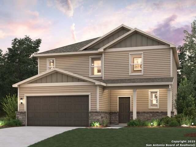 The Wilson at Hiddenbrooke is a two-story haven, where the foyer ushers you into an expansive open-concept great room, featuring distinct dining and living areas, along with a kitchen boasting an island and corner pantry. This heart of the home opens to an optional covered patio, complemented by a welcoming front porch. A convenient half bathroom is also located on the first floor. Upstairs, three bedrooms ensure private living quarters. Two bedrooms share a full bathroom, while the spacious primary suite enjoys its own en-suite bathroom, complete with a dual-sink vanity and walk-in closet. A convenient laundry room completes this thoughtfully laid-out home.. Additional home highlights and upgrades: 36" kitchen cabinets quartz countertops and backsplash 4" baseboards throughout home 9' ceilings on first floor Luxury "wood-look" vinyl plank flooring in common areas Stainless-steel appliances Soft water loop upgrade Separate garden tub and shower Tile surrounds in all baths Cultured marble countertops and modern rectangular sinks in bathrooms Landscape package with fully sodded yard and irrigation system Extended covered patio Garage door opener with two remotes Stone exterior Exceptional included features, such as our Century Home Connect smart home package and more