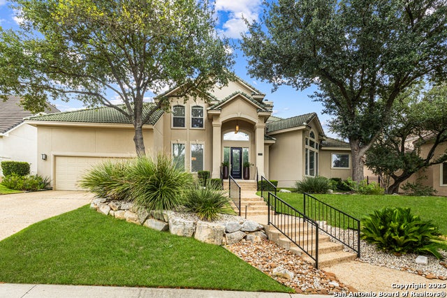 ***Open House Saturday September 27th from 2pm-4pm***Tucked away in the highly sought-after Highlands at Sonterra, this beautifully maintained Mike Hollaway custom home truly has it all. Featuring 5 spacious bedrooms, 4.5 baths, and a dedicated office, this two-story home is thoughtfully designed for both comfort and function. The primary suite is located downstairs with a spa-like bath including a Jacuzzi tub and large walk-in closet. A second bedroom with a full bath downstairs offers flexibility for guests or multigenerational living. Upstairs, enjoy a large game room and three additional bedrooms, each with access to full baths. The gourmet kitchen boasts unique stonework, an island, and a breakfast bar - perfect for casual mornings or entertaining. The light-filled living spaces include French doors and elegant finishes throughout. Step outside to your private backyard oasis, complete with lush landscaping and a relaxing spa, ideal for quiet evenings or weekend gatherings. All of this just 3 minutes to The Club at Sonterra and within 5 miles of five premier golf courses - a dream location for golf and country club enthusiasts.