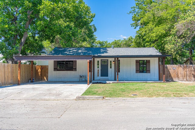 LOCATION, LOCATION, LOCATION! This charming, fully remodeled single-story home offers 2 bedrooms and 2 bathrooms, combining modern comfort with unbeatable convenience-just minutes from downtown New Braunfels. Perfectly situated near HEB, shopping, dining, and all the attractions downtown has to offer, this home boasts an open floor plan flooded with natural light, creating a bright and airy atmosphere. The spacious living room serves as the focal point, complete with an electric fireplace that adds both warmth and charm. The updated kitchen and dining area feature granite countertops, a gas cooktop, stainless steel appliances, a convenient breakfast bar, and ample cabinet space. A discreet laundry closet is thoughtfully tucked away for added convenience. The primary suite is a true retreat, highlighted by bay windows overlooking the expansive backyard. It offers a large walk-in closet and a beautifully updated bathroom with dual vanities and a floor-to-ceiling tiled walk-in shower. The second bathroom is equally stylish, featuring a pedestal sink and a tub/shower combo. Step outside to enjoy the large covered deck, fenced backyard, and storage shed-the perfect setup for entertaining, relaxing, or simply enjoying outdoor living. This home truly embodies the perfect blend of modern updates and prime location, offering a lifestyle of convenience and comfort in the heart of New Braunfels.