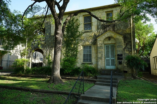 Charming 2nd Floor duplex unit located near Trinity University. This light filled 2/1 boasts wood floors, fireplace in living area, high ceilings and many original details that make it so attractive. Enjoy a beautiful, covered balcony view of the neighborhood with morning coffee, accessible from living room or primary bedroom via glass windowed French doors. Kitchen and bath have modern conveniences yet retain the historic charm. Includes stove, dishwasher, refrigerator, 1 garage with W/D connections.