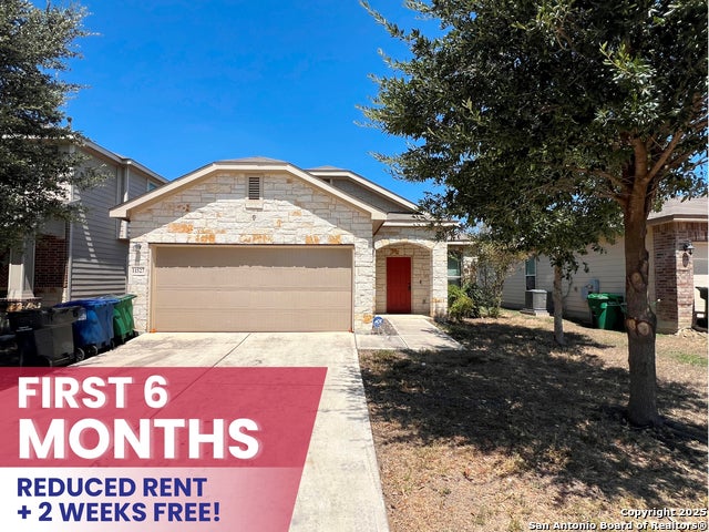 *** Move-in Special 2 Weeks Free Rent *** Reduced Rent $1395 for the 1st 6 months, then $1495 per month. 3 Bed 2 Bath 1309 sq ft Single Story Home on a Greenbelt. All Luxury Vinyl Plank and Tile floors, No Carpets! Living Room with Ceiling Fan. Kitchen with Granite counters, Breakfast Bar, Gas Stove, Microwave and Dishwasher. Primary Bedroom w/ Ceiling Fan, Walk-in Closet. Primary Bath with separate Shower/Garden Tub, Dual Sinks. 2 Car Garage, Gas Water heater. Fenced Yard with Covered Patio. Just minutes to 410, Brook City-Base, Lackland AFB! Community Pool and Playground. Elementary School in the subdivision.