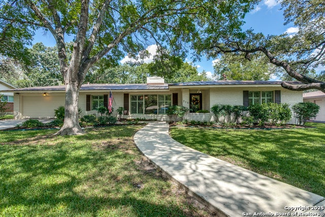 A beautifully designed single-story home, nestled among mature trees in a quiet, established neighborhood. Filled with natural light, the spacious layout features inviting living areas, a thoughtful floor plan, and seamless indoor-outdoor living perfect for both relaxing and entertaining. Rich wood floors, unique tile, and a rare dual-sided fireplace create warmth and character throughout. The private master suite, set apart from the large secondary bedrooms, offers a true retreat, while a generously sized laundry room with sink adds everyday practicality. Three additional bedrooms each include their own en suite bath, and a versatile game room or flex space provides even more room to live and play. Outdoors, the stunning backyard showcases mature trees, a covered patio, and plenty of space for gatherings with family and friends. With its combination of charm, functionality, and location-just minutes from shopping, dining, and San Antonio International Airport-this home offers the best of everything.
