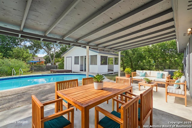 Welcome to 913 Zwicke St, a beautifully updated 3-bedroom, 2-bathroom home nestled in the heart of Seguin that blends modern style with everyday comfort. Freshly remodeled inside and out, this property offers a light and open layout, sleek finishes, and an entertainer's backyard with a private pool. Step inside to find a spacious living area with new flooring, accent walls and beautiful lighting that sets the tone for the home's clean, modern design. The brand-new kitchen features white shaker cabinets, new countertops, subway tile backsplash, and stainless steel appliances - ready for both weeknight dinners and weekend hosting. The primary suite offers a generous layout, updated ensuite bath with a combination shower, and plenty of storage. Additional bedrooms are equally refreshed with new flooring and fixtures. Outside, enjoy summer days by the in-ground pool and shaded back patio. A detached pool house/screened structure adds flexible space for storage, hobbies, or entertaining. The exterior has been given a fresh, modern look with dark painted brick, charming wood shutters, and a welcoming front porch.