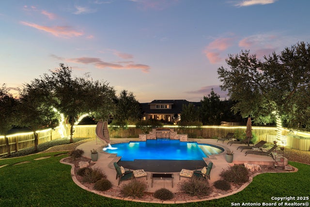 Multiple Offers Received! Welcome to this beautiful home located in the gated section of Kinder Ranch The Estates at Prospect Creek on a spacious .32-acre corner lot. Featuring an oversized three-car garage and an in-ground pool built by Cody Pools, this property is designed for both comfort and entertaining. Inside, the Open floor plan showcases wood flooring throughout the main living areas, Soaring ceilings, and abundant natural light from the large windows. The chef's gourmet kitchen is a true showstopper with upgraded white cabinetry with custom details, granite countertops, a massive breakfast island, gas cooking with a custom hood vent, double ovens and designer lighting. The home offers four spacious bedrooms and 3.5 bathrooms, providing plenty of room for family and guests. The backyard oasis includes a sparkling pool, a covered patio, and plenty of space to host gatherings or simply relax in privacy. Located in the highly rated Comal ISD, Kinder Ranch Elementary is right in the neighborhood, with Pieper Ranch Middle School and Pieper High School just minutes away. Residents also enjoy access to a beautiful amenities center, while nearby shopping, dining, and a quick 30-minute drive to downtown San Antonio make this the perfect blend of Hill Country living and city convenience.