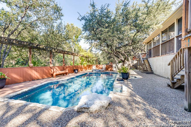 Set among mature oak trees and backing up to a serene greenbelt, this stunning brick home offers timeless curb appeal and a thoughtfully designed floor plan. The main level features a spacious kitchen with island, double ovens, and abundant cabinetry, opening to the dining and living areas. The primary suite is also on the main floor, showcasing a spa-inspired bath with soaking tub, glass-enclosed shower, dual vanities, and elegant finishes. An open flex space adds versatility for work, study, or hobbies. The second level provides three generously sized bedrooms and two full baths, creating comfortable accommodations for family and guests. On the third floor, a large game/media room offers the perfect space for entertainment, hobbies, or a private retreat. The backyard is a true oasis with a screened-in patio, expansive deck, and sparkling pool. Surrounded by mature trees and designed with multiple seating areas, it's ideal for entertaining or unwinding at home. Located in the desirable Deerfield community, you'll enjoy neighborhood amenities such as a pool, tennis courts, clubhouse, playground, and BBQ area. With three convenient entrances off Huebner, Blanco, and Bitters, you'll have easy access in and out of the neighborhood. This Deerfield gem offers the perfect blend of flexible living spaces, outdoor enjoyment, and a community setting that enhances your lifestyle.