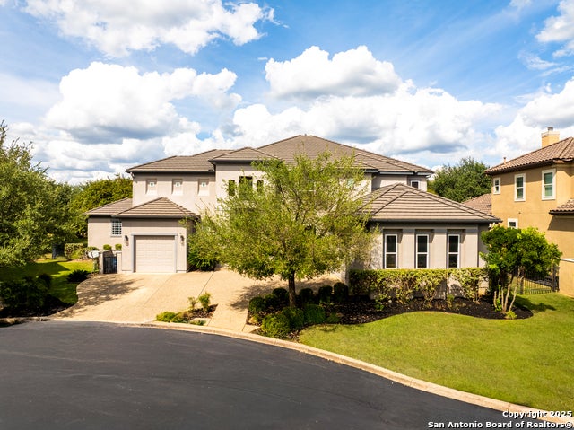 Welcome to 6331 Granada Way - Set within the prestigious gates of The Dominion, this McNair Custom Home offers a sleek architectural design, grand scale, and a marvelous Keith Zars Swimming pool. Spanning over 5,400 square feet, this 6-bedroom, 6 full and 2 half-bath residence blends sophistication and comfort in perfect harmony. The moment you enter, soaring ceilings, designer chandeliers, and expansive ceramic tile flooring create a statement of refined elegance-no detail overlooked, no carpet in sight. The chef's kitchen is a vision of contemporary artistry with stainless steel appliances, gas cooking, and a built-in refrigerator, perfectly complemented by dual dining spaces designed for both intimate dinners and lavish gatherings. The thoughtfully designed layout offers three bedrooms downstairs and three upstairs, while a private game room with custom built-in bunk beds provides the ultimate cinematic escape. Each ensuite bath showcases marble countertops and spacious walk in showers, making every bedroom a retreat of its own. Step outdoors and experience a true sanctuary: an oversized covered patio with a fully equipped outdoor kitchen and fireplace, overlooking a modern Keith Zars pool and spa complete with a pool cover-an entertainer's dream and a tranquil escape all in one. Set on a .37-acre homesite with a 3-car garage, this home embodies the effortless beauty of contemporary living within San Antonio's most exclusive guard-gated community. The Dominion is a premier master-planned community featuring luxurious garden homes and elegant estates, all crafted by San Antonio's leading architects and builders. Set against a backdrop of rolling hills, the area is adorned with lush green belts and lakes, offering a serene environment with world class amenities including- a golf course, country club, and guarded entry.